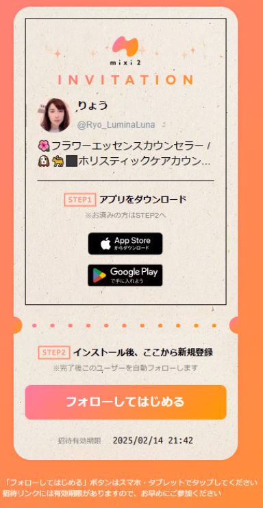 Ryo_LuminaLunaからの #mixi2 招待🎟️